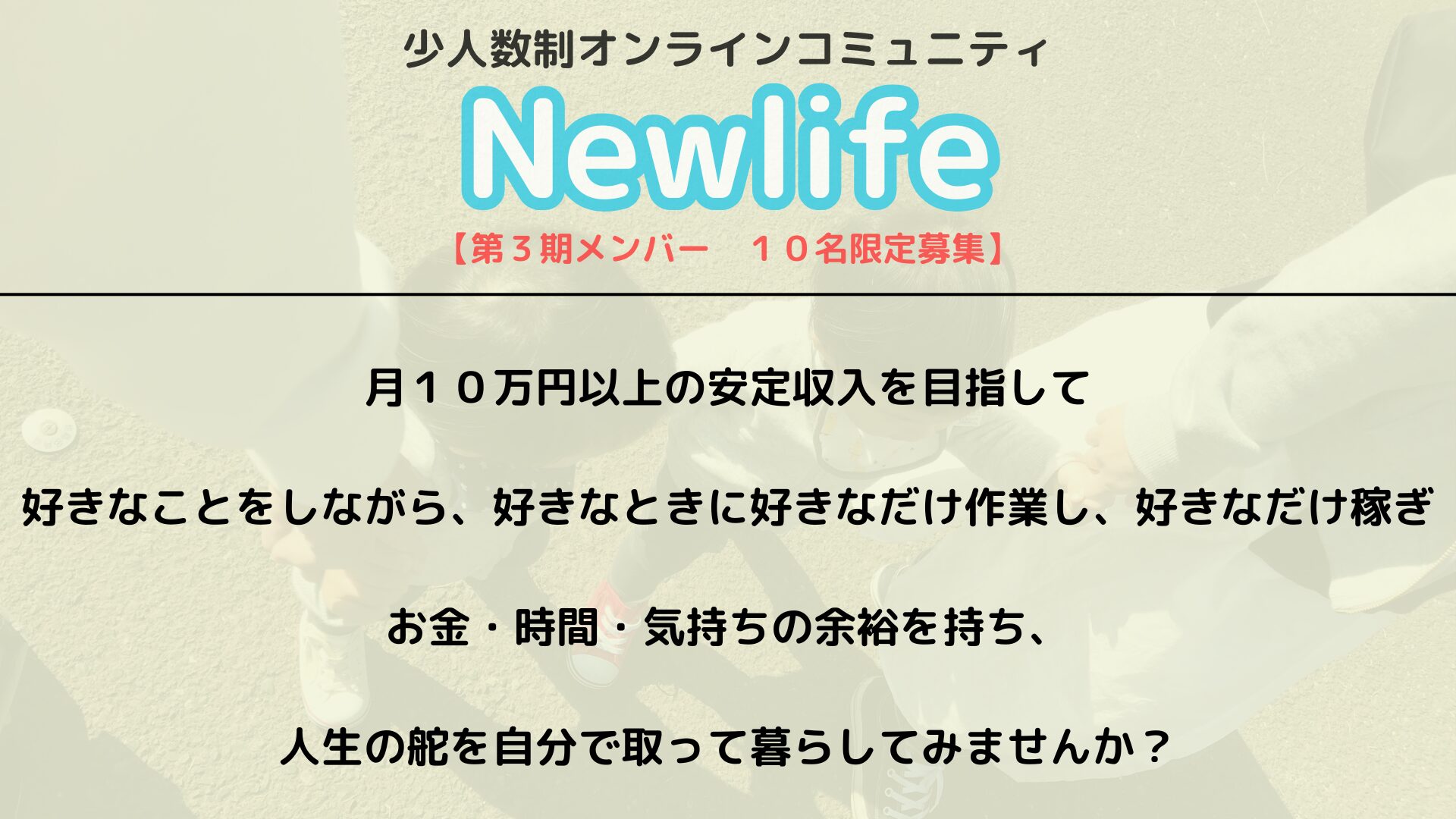 少人数制オンラインコミュニティ「Newlife」第3期の参加をご検討いただき、ありがとうございます!